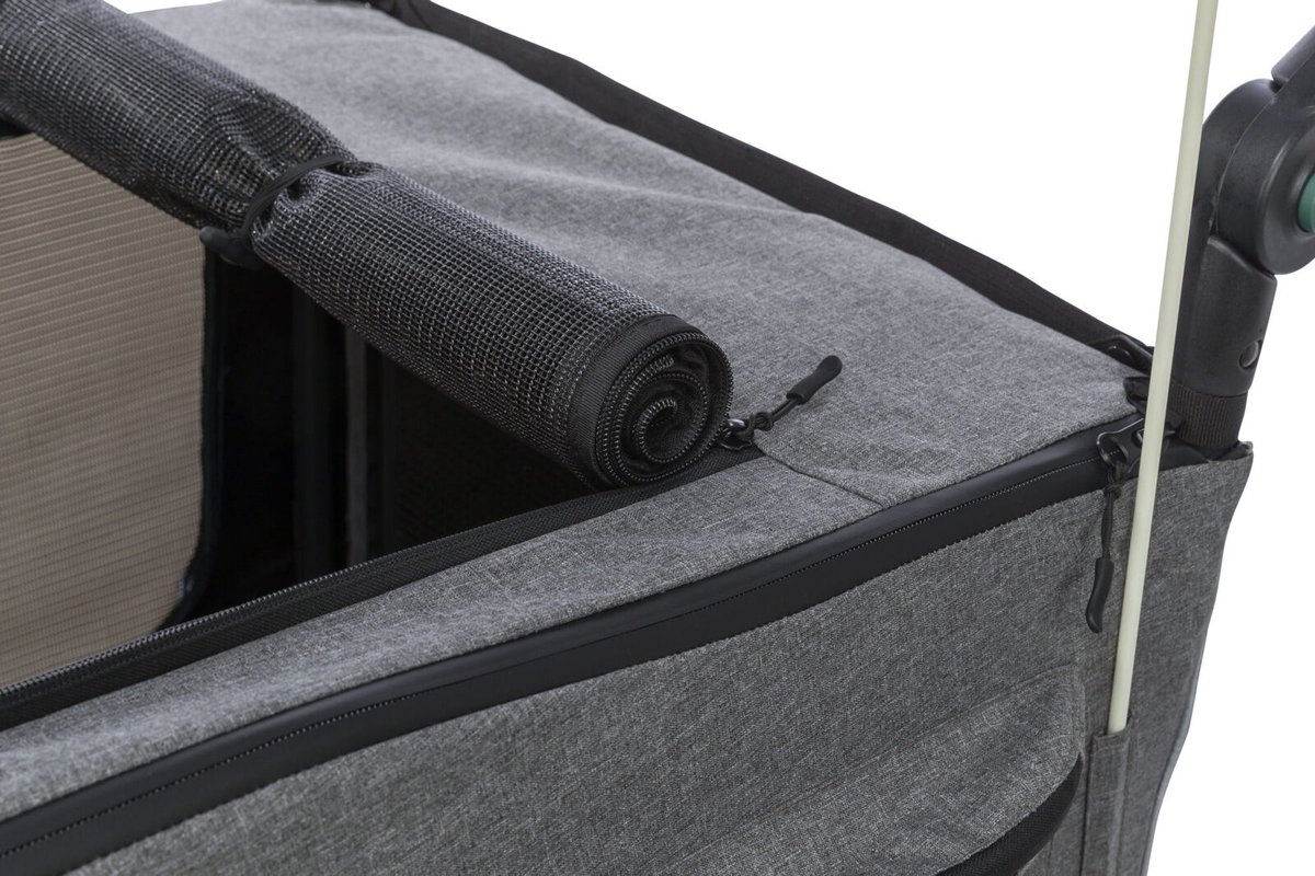 De Trixie fietskar is niet alleen praktisch, maar ook flexibel in gebruik. De dissel kan eenvoudig aan de zijkant worden opgeborgen wanneer de kar niet aan de fiets hangt, waardoor hij gemakkelijk te vervoeren en op te bergen is. Dankzij de uitbreidingsset kan de kar snel en moeiteloos worden omgebouwd tot een rugbuggy, ideaal voor wandelingen of boodschappen. Het handvat is in hoogte verstelbaar, zodat je comfortabel kunt rijden, ongeacht je lengte.