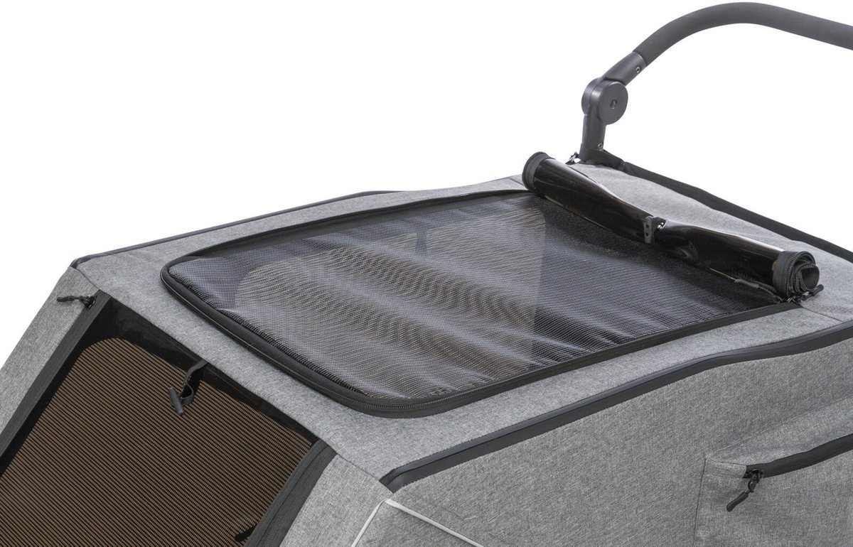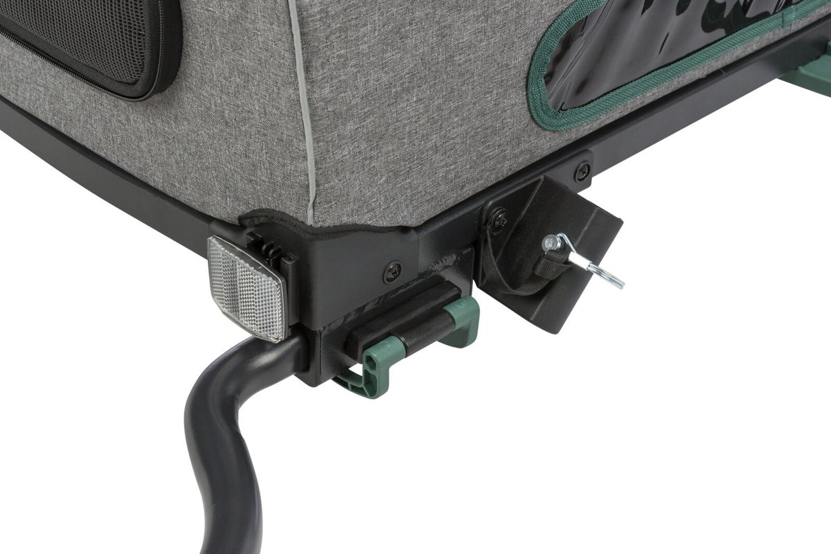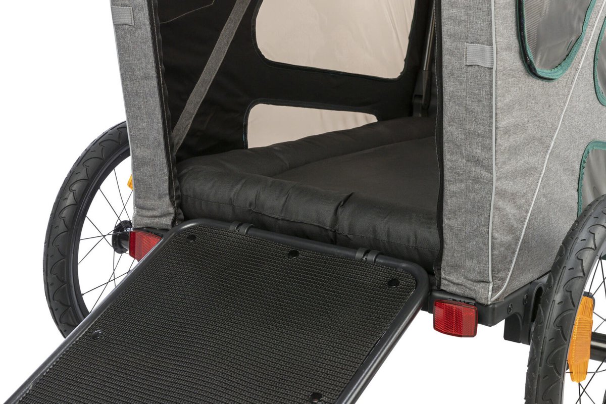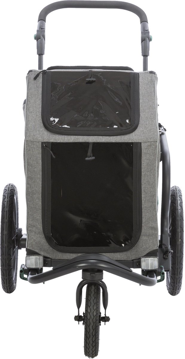 Deze stijlvolle en praktische fietskar in de kleuren grijs en salie is de ultieme metgezel voor actieve hondenbezitters. Of je nu een wandeling maakt, fietst of gaat kamperen, met de Trixie Fietskar geniet je van extra vrijheid en comfort voor je hond. Bestel vandaag nog en maak je outdoor avonturen nog leuker!