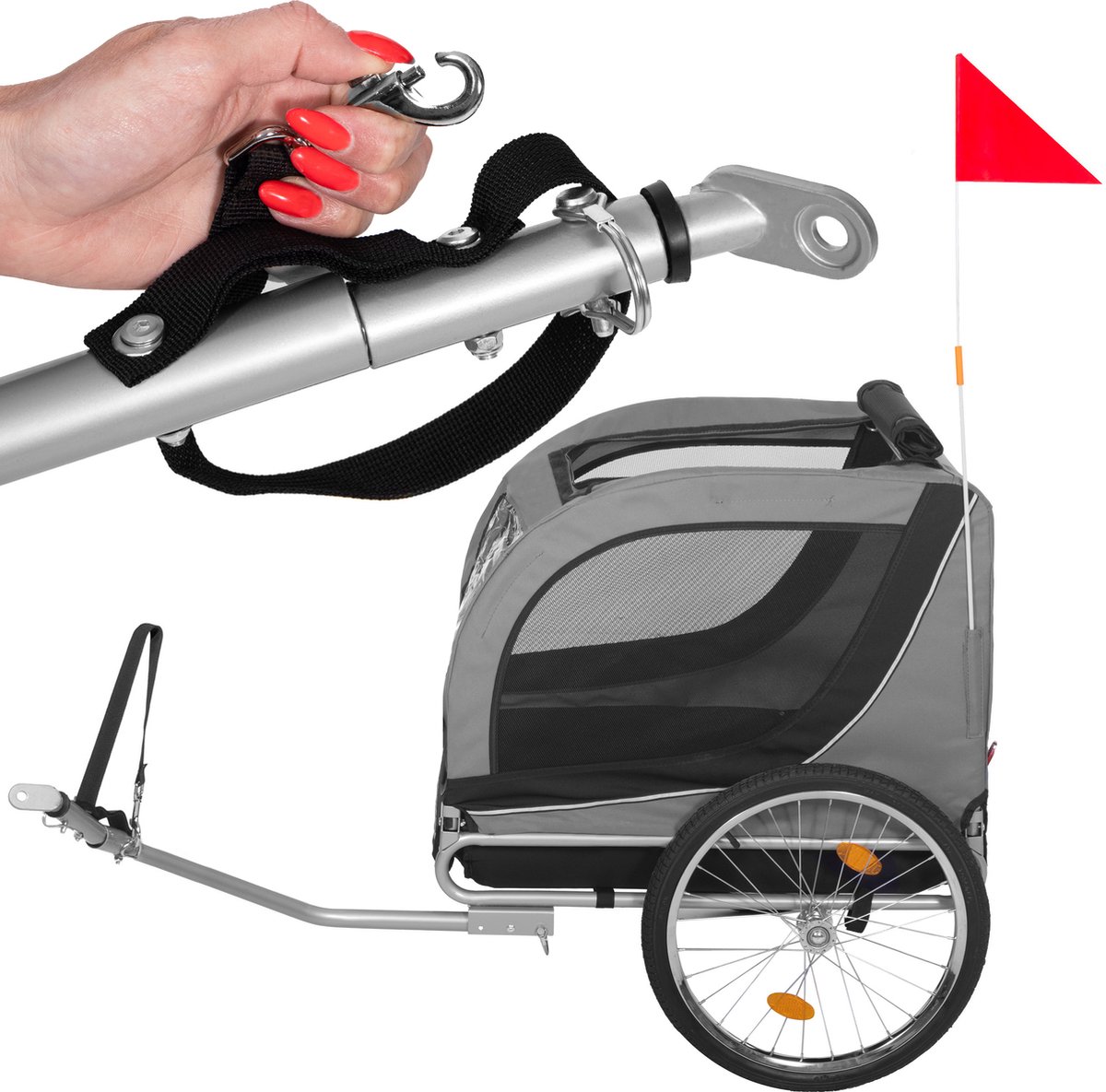 Maak uw buitenavonturen compleet met deze betrouwbare en stijlvolle hondenfietskar. Veilig, stevig en comfortabel voor uw hond, terwijl u geniet van de vrijheid en het plezier van actief samen reizen!
