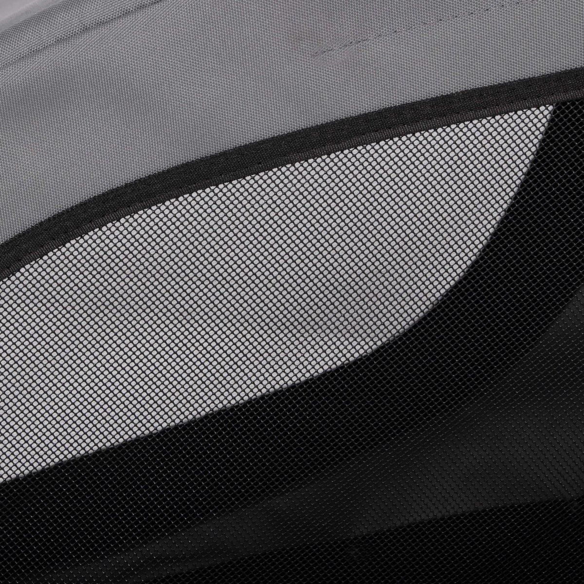 De fietskar is uitgerust met dubbele ingangen, afsluitbare stof- en gaasramen, een comfortabel dak en een verstevigde bodem voor extra veiligheid. Grote ramen van ademend gaas zorgen voor voldoende ventilatie, terwijl reflecterende elementen en een waarschuwingsvlag zorgen voor optimale zichtbaarheid. De verschillende afmetingen en soepele bedieningsmogelijkheden maken deze kar geschikt voor vrijwel elke fietser die met een middelgrote hond reist.